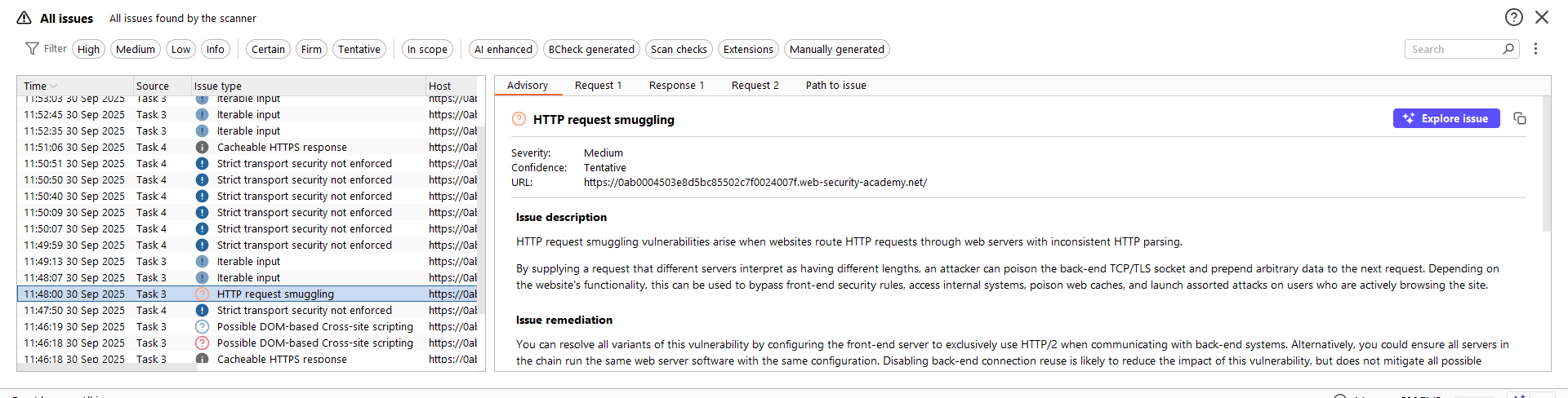 En esta entrada explicaremos y solucionaremos todos los laboratorios relativos a HTTP Request Smuggling. Hay muchos walkthroughs sobre cómo resolver estos laboratorios, pero exponerlos aquí nos sirve para afianzar conceptos y enseñaros además algunos trucos de uso de Burp Suite Professional, así como comentar veces que hemos visto las vulnerabilidades estudiadas en los laboratorios en la vida real. Sin más dilación, ¡comenzamos!