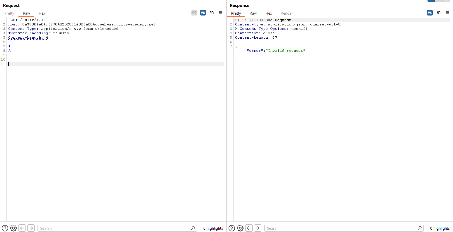 Estamos ante un caso de TE.CL. Por ello, usamos el siguiente payload:
