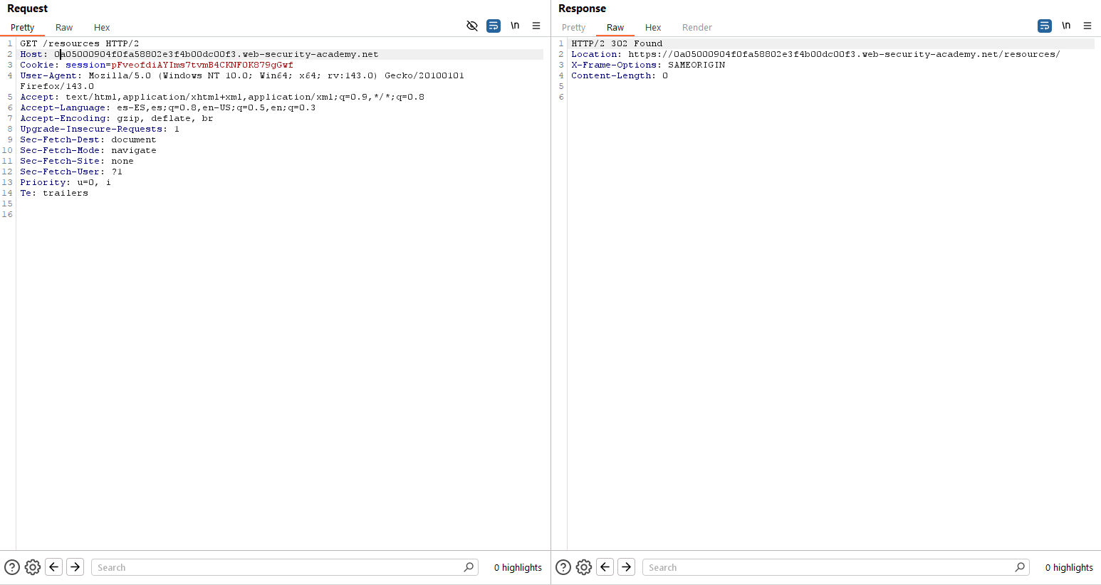 Host: 0ab900ff04949eac828751c7000a0073.web-security-academy.net