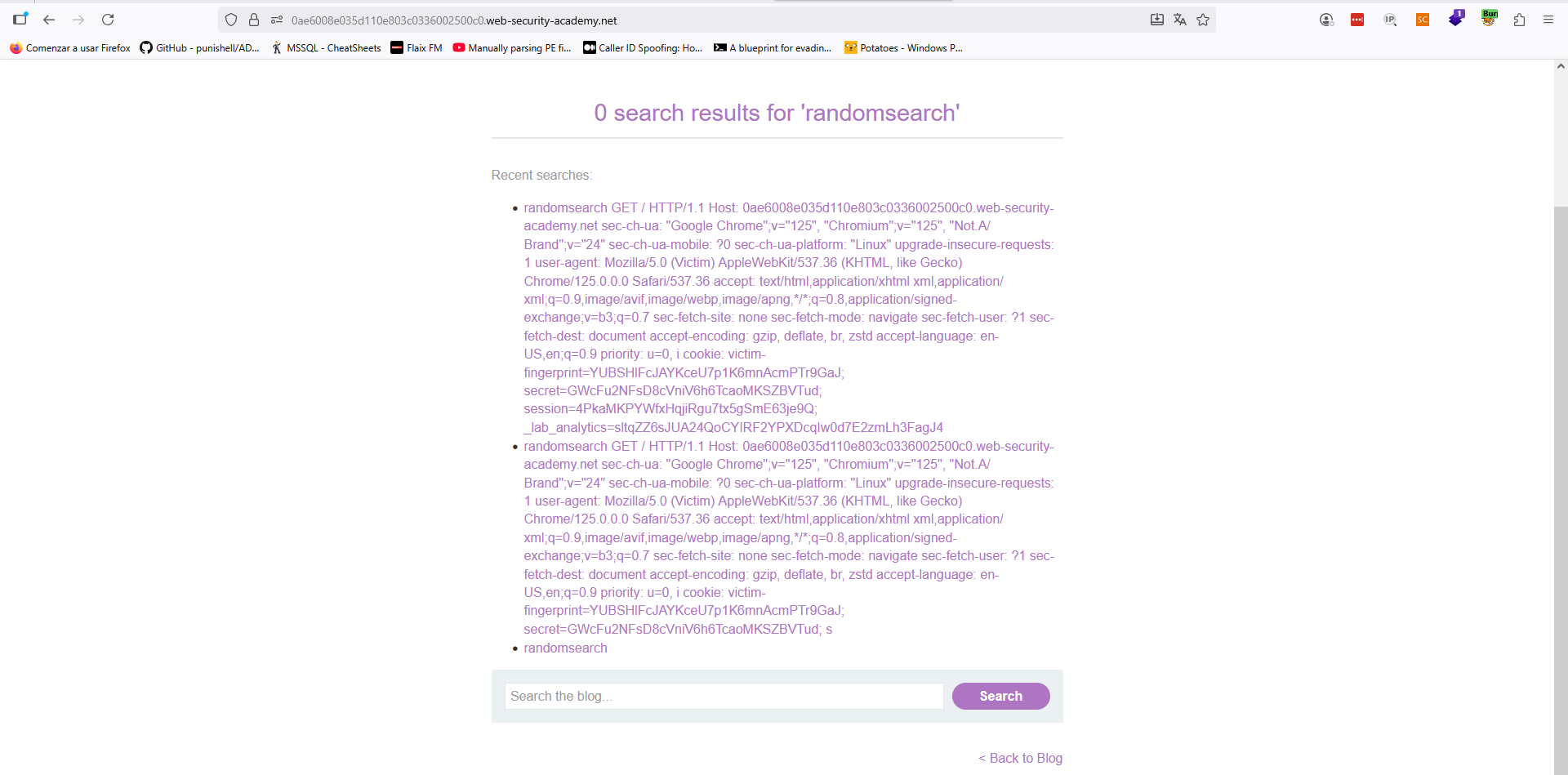 Ya tenemos las cookies de la víctima. Ahora, únicamente, tenemos que lanzar una petición con dicha sesión para resolver el laboratorio.