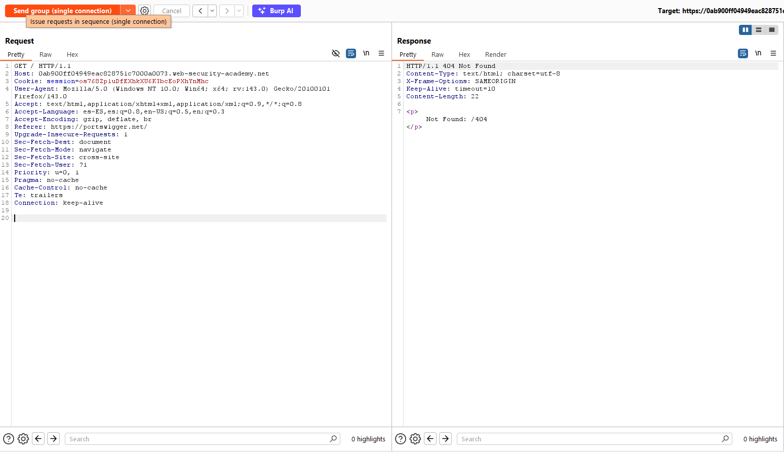 Agrupamos las peticiones y las enviamos por la misma conexión. Tal como podemos ver, logramos hacer HTTP Request Smuggling: