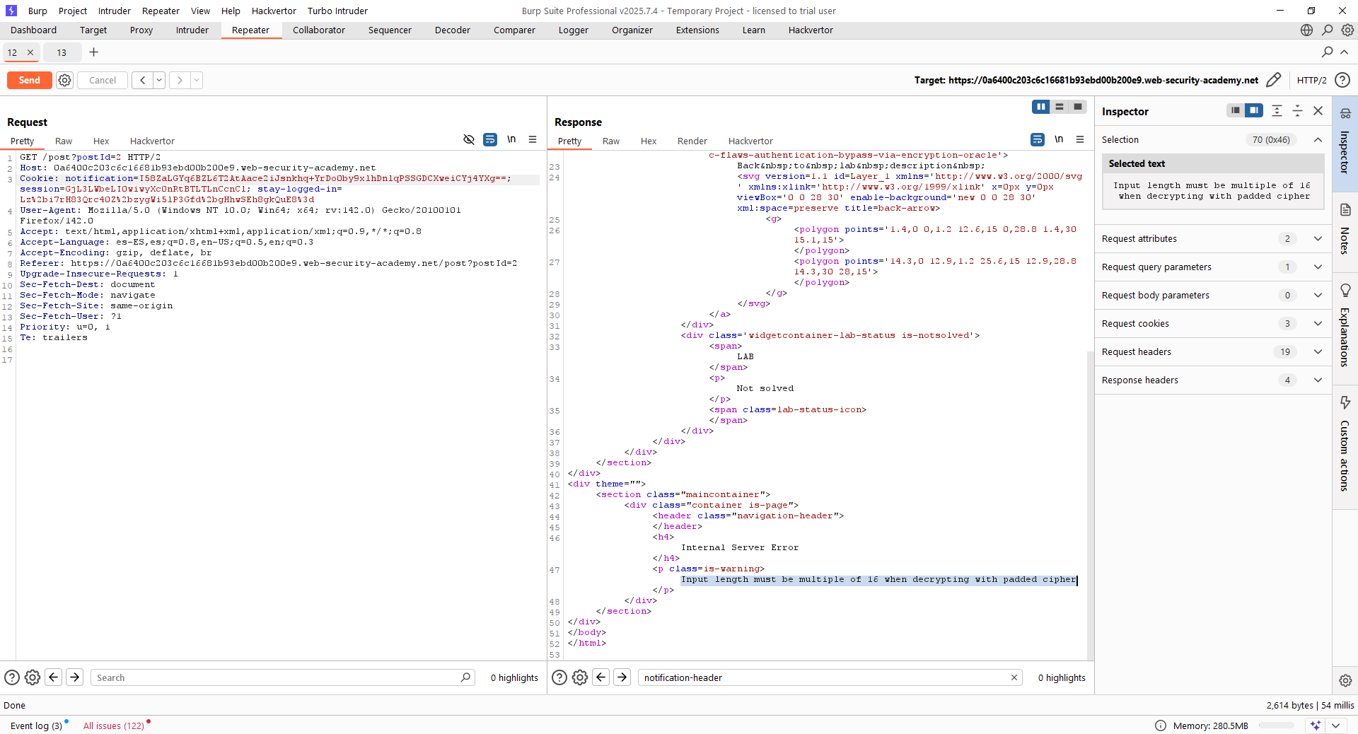 Lab14 (Practicioner) – Authentication bypass via encryption oracle