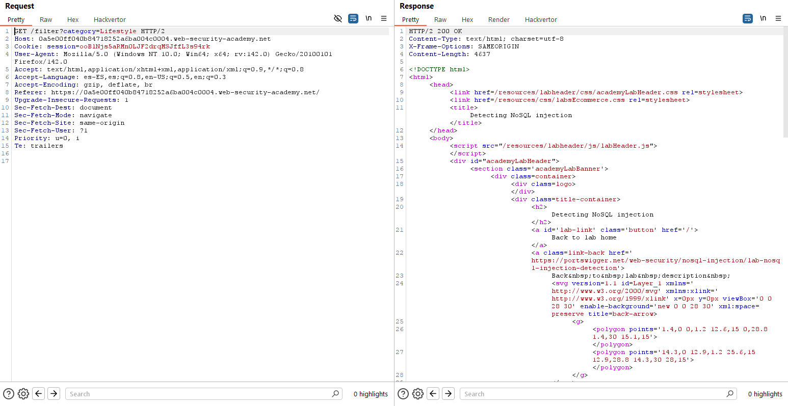 Lab1 (Apprentice) – Detecting NoSQL injection