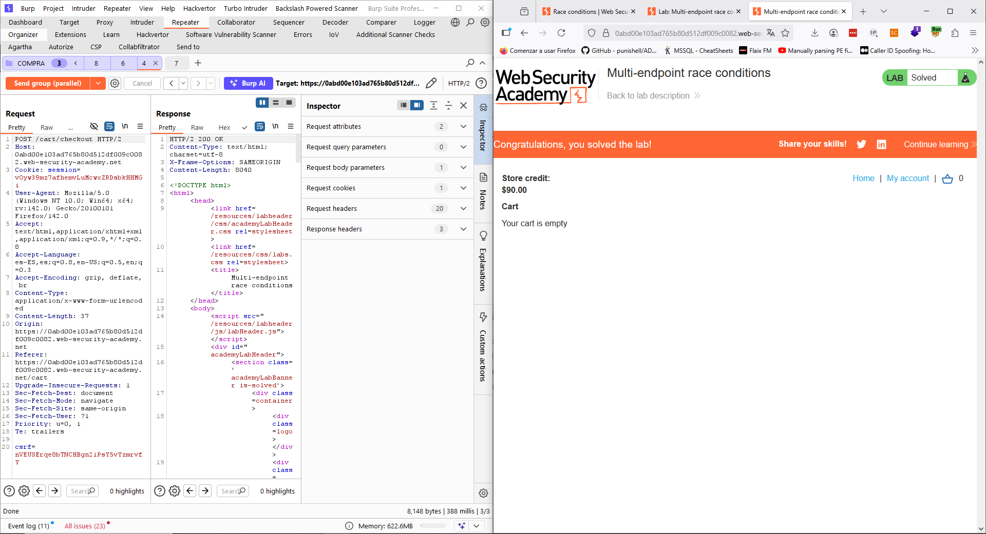 En esta entrada explicaremos y solucionaremos todos los laboratorios relativos a Race Conditions. Hay muchos walkthroughs sobre cómo resolver estos laboratorios, pero exponerlos aquí nos sirve para afianzar conceptos y enseñaros además algunos trucos de uso de Burp Suite Professional, así como comentar veces que hemos visto las vulnerabilidades estudiadas en los laboratorios en la vida real. Sin más dilación, ¡comenzamos!