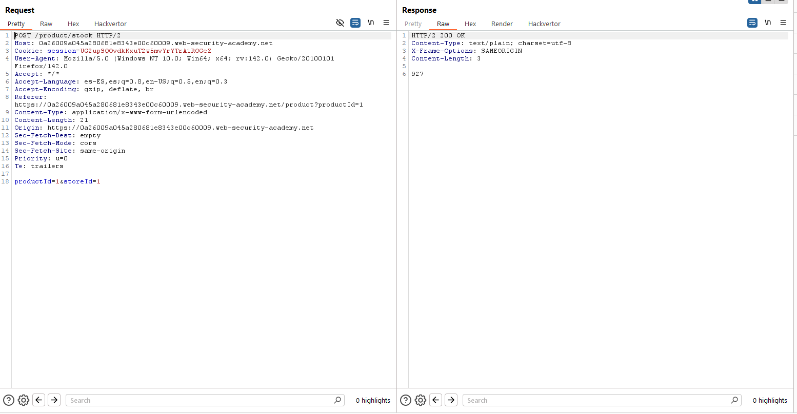 Comenzamos, de nuevo, mapeando la petición vulnerable, que es el checking de stock de un producto: